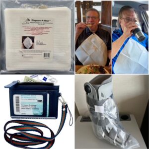 NEW! Dine A Nap Retail Pack: We are now offering a consumer pack of our commercial product, Dine A Nap Individual Wrap Napkin Bib. Packed 5 count per bag. Ideal for taking along in pocket or purse when traveling, especially on airplanes, trains, and cruise ships etc. Save one’s shirt or blouse from those unexpected accidental stains from drips, drops, and spills of food or beverage. Disposable friendly after use.