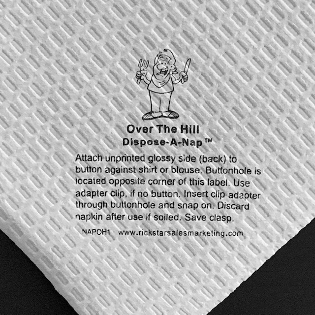 Over The Hill Dispose-A-Nap™ Buttonhole Napkin Bib “For Stain Prevention On the Go”